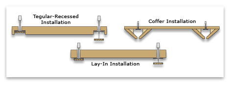 Lay-in Installation – Lay-in Squares simply Lay-in a standard T-rail grid. The grid is exposed below the surface of the panels. This is a very cost effective solution for adding the warmth of wood to any project.