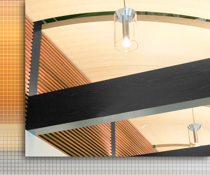 Grinzile de accent suplimentează varietatea larga de alte sisteme de plafon din material lemnos.